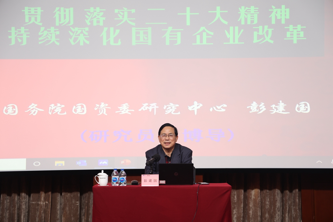 11月14日下午,特邀讲师中国国资国企研究院院长、国务院国资委研究中心原副主任彭建国以《贯彻落实二十大精神 持续深化国有企业改革》为题,进行专题培训。彭建国对党的二十大的重要意义、报告内容进行了详细的介绍,并结合国有企业实际,从国企改革历程、国企改革总体要求和基本思路三个方面对深化国资国企改革,做强做优做大国有资本和国有企业进行了阐述;从国企改革推进国有经济布局优化结构调整的基本原则、主要目标、重点工作以及聚集点进行了讲解,充分诠释了党的二十大报告提出的“深化国资国企改革,加快国有经济布局优化和结构调整,推动国有资本和国有企业做强做优做大,提升企业核心竞争力”等重要内容。